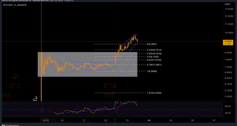 APT was with 20% growth yesterday. This currency, which has been listed in several major exchanges for the past four days, has a very good project in terms of fundamentals. But in financial markets, investing in each asset has its own risk. From a technical point of view, a short-term analysis is performed due to the lack of a high exchange rate in the past. We can ignore the first bullish candle due to the initial excitement of the transactions. A range channel in the range of $8.59 to $6.60 is considered on the chart, which has broken the ceiling of this channel.
