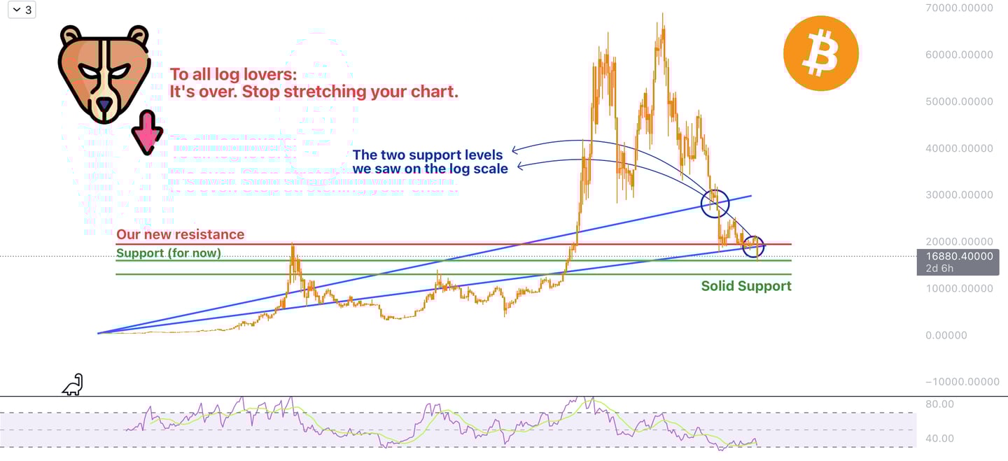 The last time we did a Bitcoin analysis, it was about Bitcoin's chart with the log scale.
