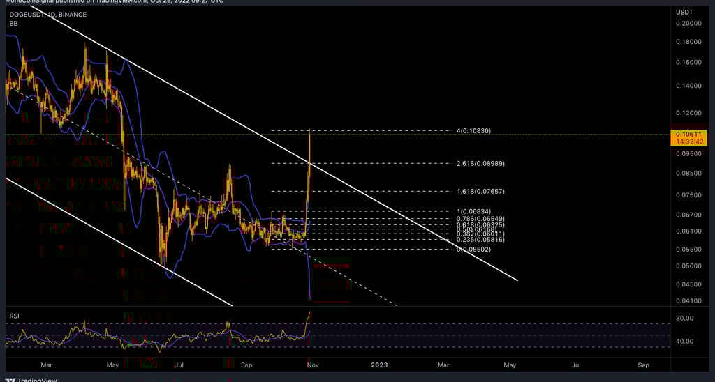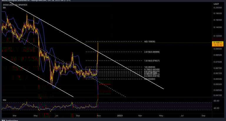 DOGE has been growing very well in the past few days. Buyers well supported the price of this currency. After the news of Elon Musk's purchase of Twitter, it was accompanied by more support from buyers, and after breaking the resistance of the $0.080 range, it moved towards the resistance of the ceiling of the range channel. Now the price is trading in the range of $0.10. Even this time, there is a potential to increase the price above the range of $0.10 and even a fake break of this area. Therefore, in this range, considering that the RSI indicator is inside the oversaturation range and shows the number 87. Thus, the probability of price reaction to this resistance area is high.