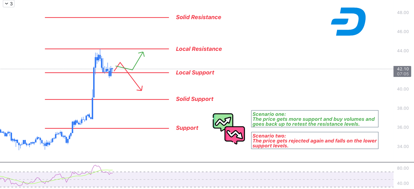 The price has made a 14% pump today and got rejected by the local resistance price area.