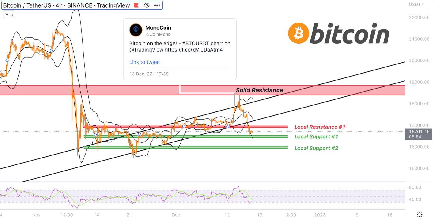 The support levels will push the price up for now but don't forget that the actual solid support level is around the 13K area.