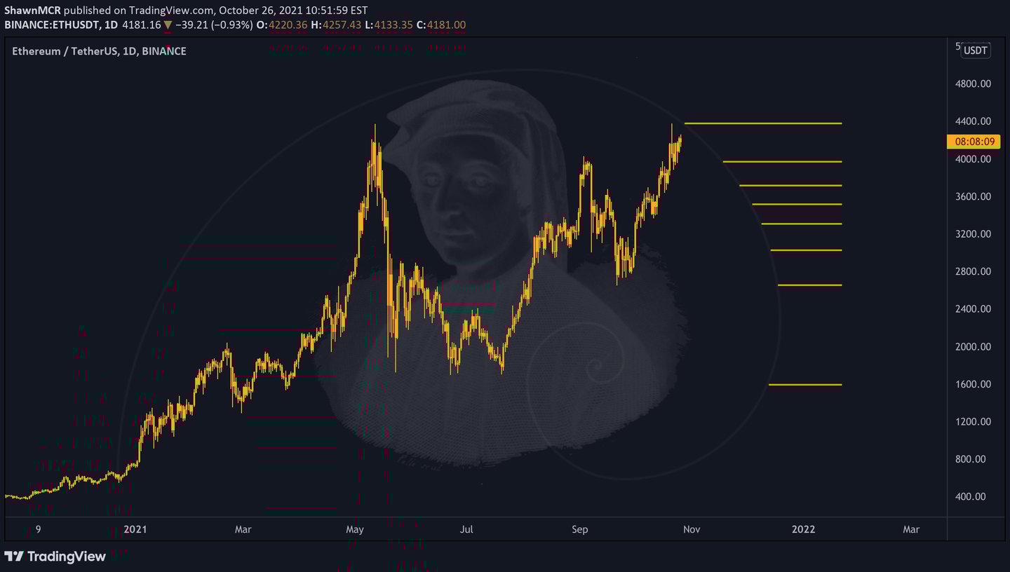Now let us talk about Fibonacci in the finance world. You might use it too, as Fibonacci Retracement Levels. (As you see on the chart)