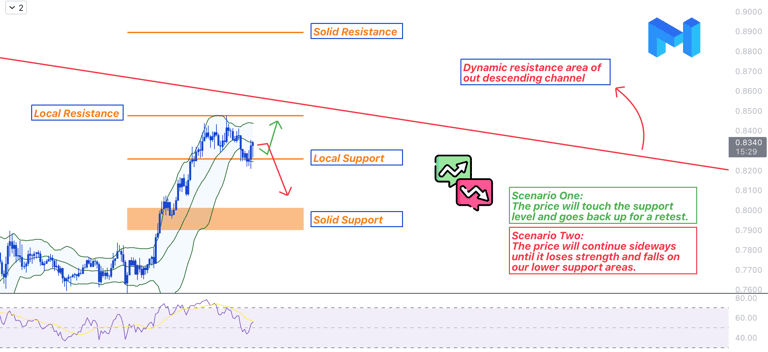 We might see some short-term uptrend for MATIC, but I suggest holding on and not opening long positions because the market can decline when the price nears the dynamic resistance level.