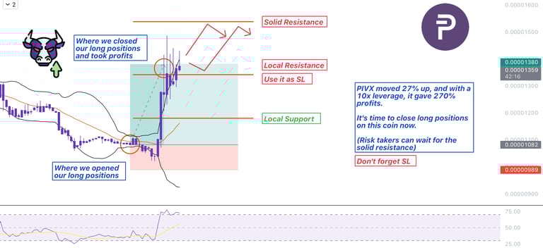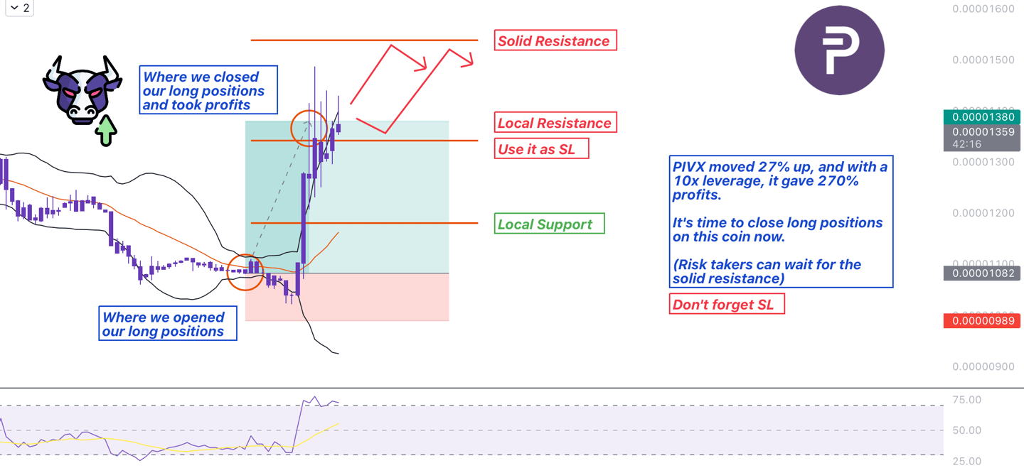 We opened our positions on PIVX around the $0.00001082 area, which was a solid support level and a great buy/long opportunity.