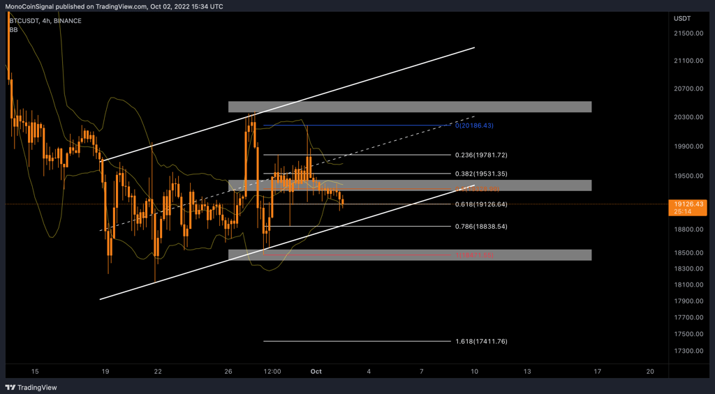 Yesterday, Bitcoin passed the highest range in its trading history. Yesterday's Bitcoin candlestick remained unchanged, forming a full-range candlestick with a small body and long shadows, and the price of Bitcoin is below the resistance range of $19,300 to $19,445. If this level becomes support again, we can expect Bitcoin to grow in the short term. But if a negative reaction accompanies the resistance, there is a possibility that the price will fall towards lower supports. Due to the formation of a higher ceiling and floor, price growth is possible. On the other hand, the price remaining near the main medium-term support of Bitcoin has increased the probability of failure. So, until a strong sustained movement is observed in the 4-hour time frame, trades can be very short-term with small profit limits and small loss limits.