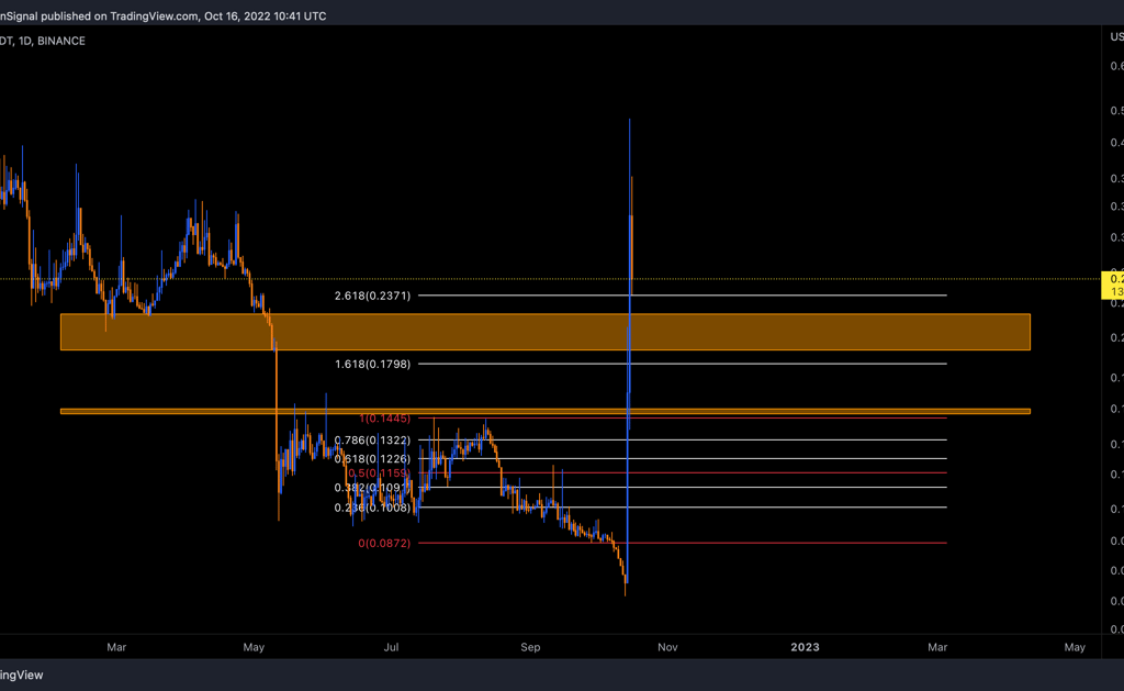 PHA has been associated with a 200% growth in the past day. With the support of buyers and the strong increase in demand, we see the breaking of major resistances and the change of its price trend in the daily time frame. Also, a more important resistance in the range of 0.22 to 0.19 dollars has now become a support, which can be supported again in this area if the price drops and enters a corrective wave. Also, using the retracement Fibonacci tool, the range of $0.147-0.150 is considered as stronger rebound support. If there is high selling pressure in the corrective wave, the price correction can continue up to this level. The existence of the first support is only for checking the possible price reaction and should be confirmed by other analytical tools, such as candlestick patterns and divergences.