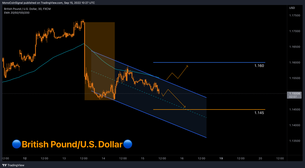 For today in the 30-minute time frame, downward tendencies are evident, but the continuation of this decrease is conditional on remaining below the price range of 1.1445-1.1455. In this case, a decrease to the 1.1450 area can be expected. If this resistance is broken, it should be flexible and expect a cross-sectional growth up to the range of 1.1600.