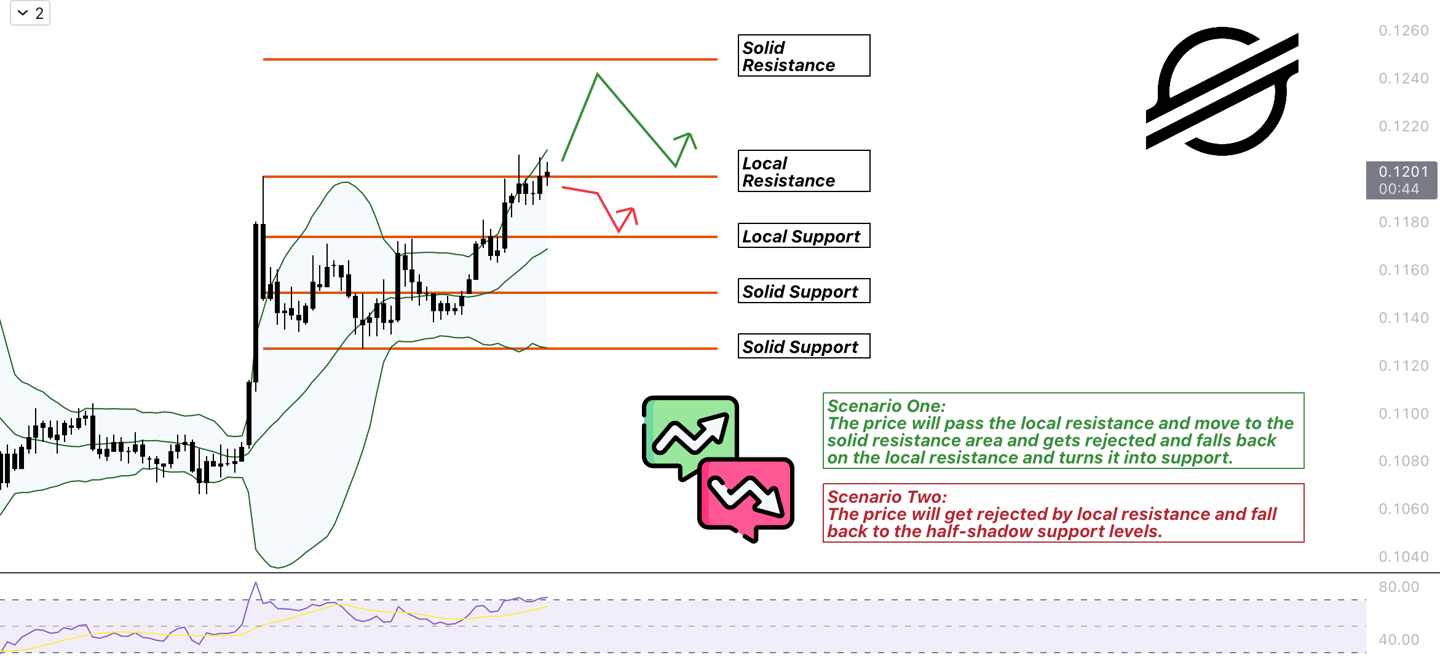 The price will pass the local resistance and move to the solid resistance area and gets rejected and falls back on the local resistance and turns it into support.