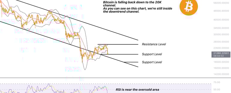 There are a few support levels on the way down. Two are static, and one is the lower band of our downtrend channel.