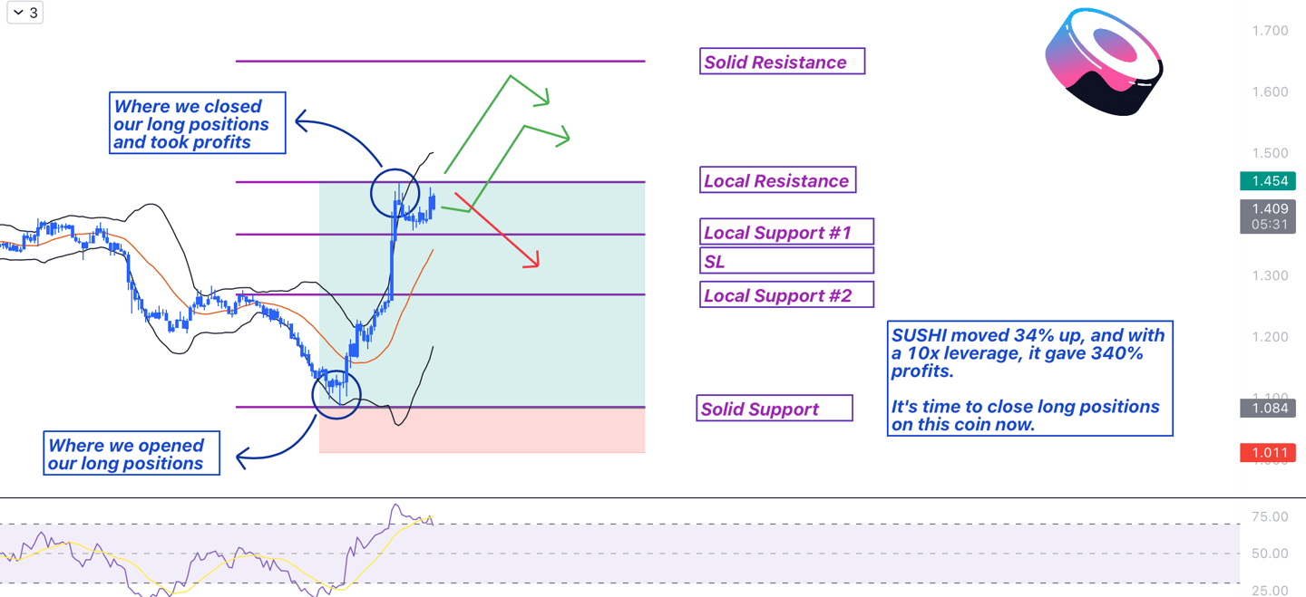 Once more, we opened our positions on SUN around the $1.087 area, which was a solid support level and a great buy/long opportunity.