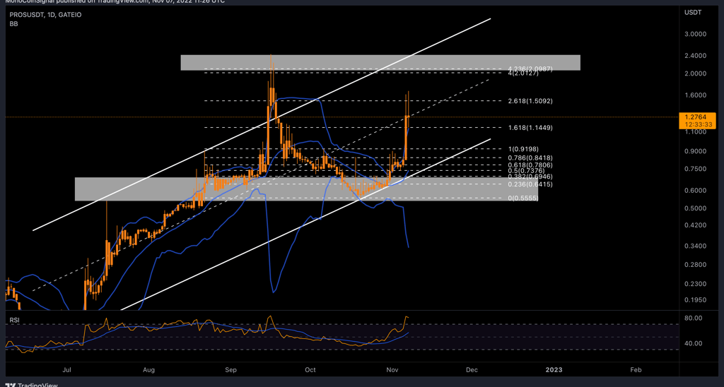 PROS has been associated with a growth of 57% in the past day. Buyer support on this currency has caused a strong pump from the $0.85 support range. The resistance in the range of 2.06 to 2.42 dollars for this currency is a very important range. Because in case of breaking this resistance and confirmation, we can expect that the trend of this currency will rise in the weekly time frame. The price is now inside a medium-term bullish channel, and the ceiling of the channel has overlapped with the indicated resistance. On the other hand, due to high buyer power, negative divergence is not observed. The last daily candle has broken the midline of the ascending channel, and this range could be the closest valid support for continuing the trend.