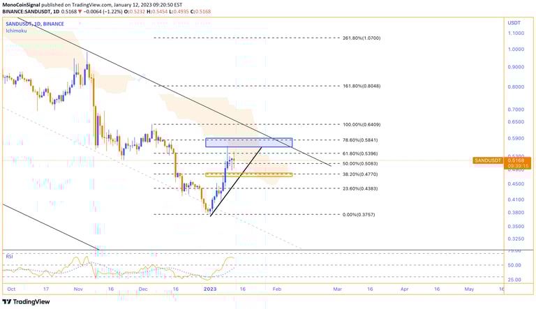 SAND continued its price growth last week. The support of the buyers caused the breaking of an important resistance in the range of $0.47-0.48. The increase in the price of the sandbox continued to the resistance range of 0.56 to 0.59 dollars. The bullish wave was corrected by hitting this resistance. The first hit of the $0.50 support area has given a positive reaction. But this quick return has increased the possibility of the price entering the range trend. Therefore, we expect to see a short-term range trend between the current resistance and support of this currency. Another support is considered in the range of $0.47-0.48, which, if the first high does not react positively and is broken, the price decline can continue to this level. According to the upward trend line , we can expect a stronger reaction from this range.