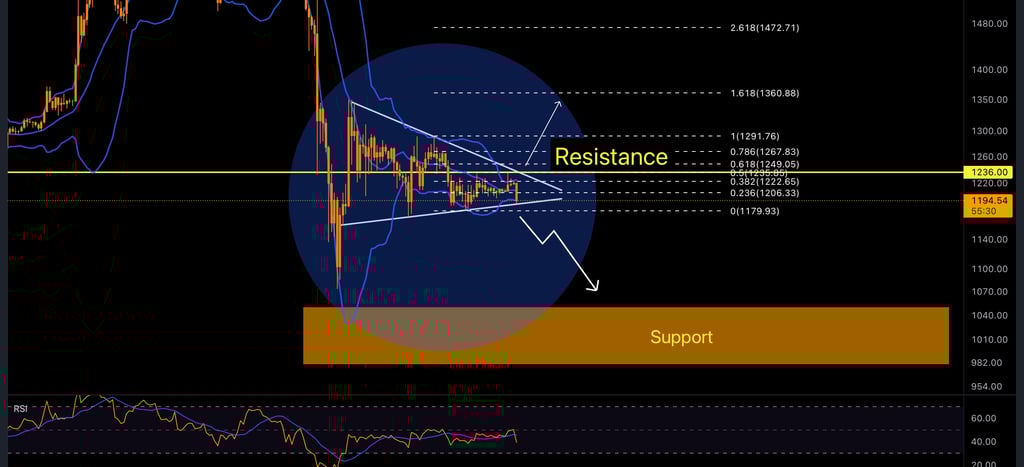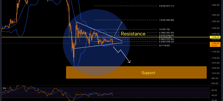 Ethereum is unable to break the resistance area (Yellow line). Don't open new positions before the breakout. The major support area is $980 - $1050, and you can place your buy orders there.