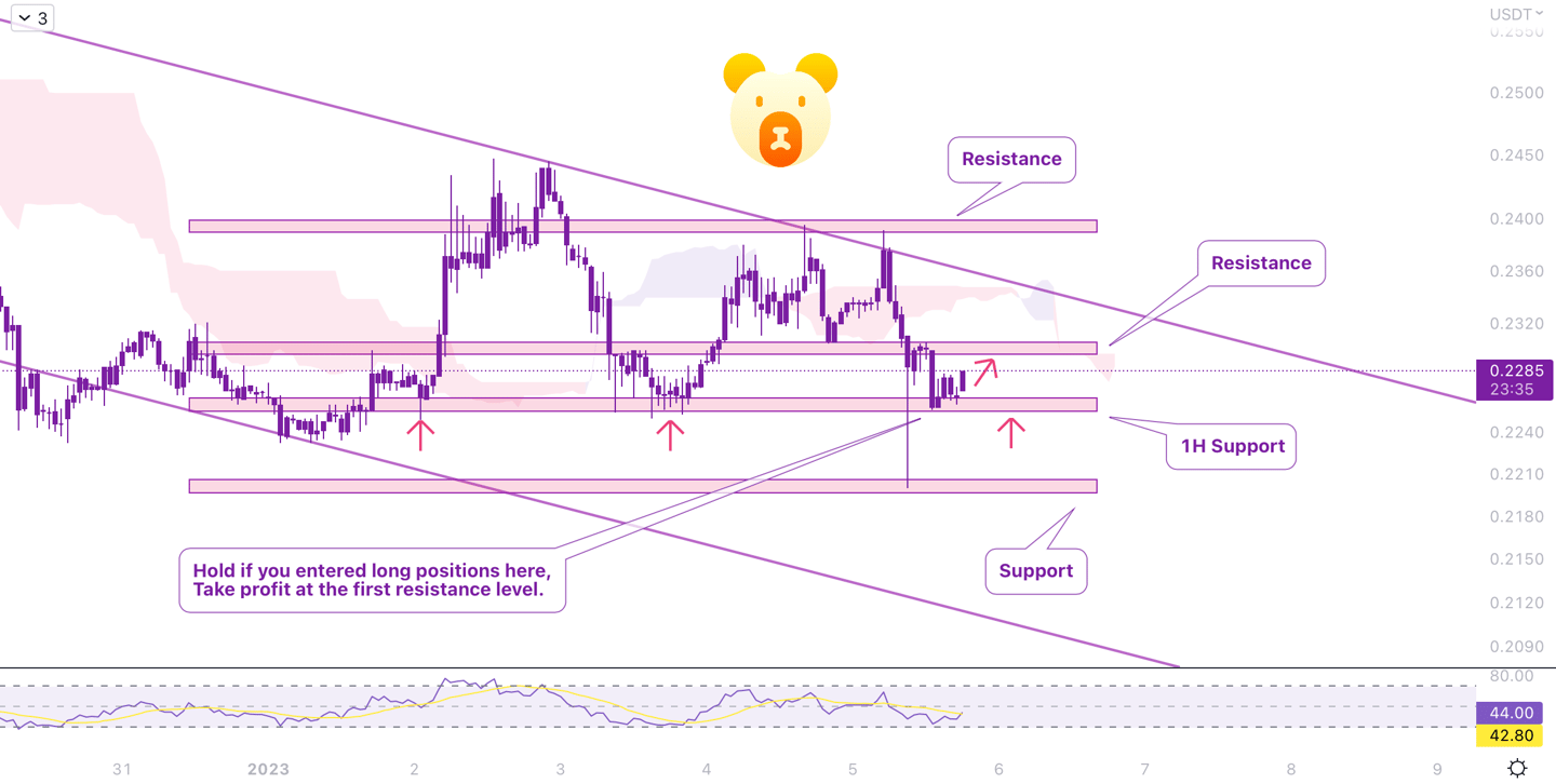 TKO just reached a 1H support level a few hours ago and made an excellent opportunity to open long positions.