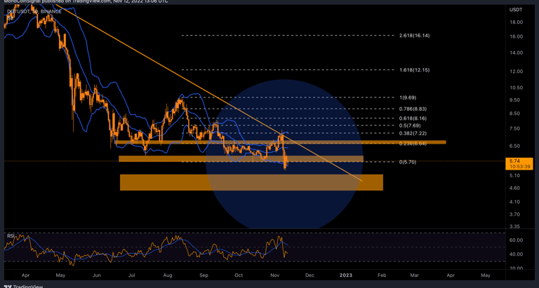 DOT had a sharp downtrend over the past week. The price of this currency registered a sharp decline after failing to stabilize above the resistance range of $6.6-6.8, and the selling pressure broke the support of the $5.7-6 range. This bearish trend could continue if Bitcoin breaks back below the $16,000 range, taking the price down to key support in the $4.5-$5.14 area.