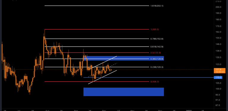 In this case, the second target is in the range of 127 to 132 dollars. But if the buyers fail to push the price above the $121 resistance area, there is a possibility of breaking the channel floor support and the $110 area support. The following supports that we can consider for this currency are in the range of 94 to 101 dollars. We can also consider a dynamic resistance on the chart, which is exactly in the resistance range of 120 to 121 dollars. Therefore, this resistance is the turning point for the continuation of the trend.