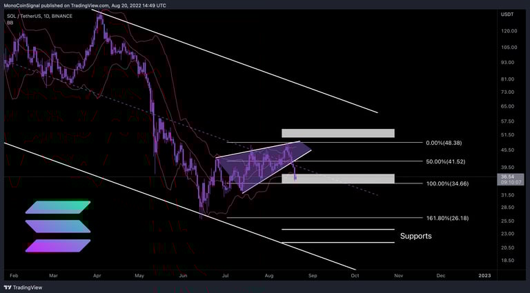 SOL has recorded an 18% price drop in the past week. The collapse that occurred the previous day confirmed the bearish corner pattern. With this strong bearish move, Solana has the potential to enter a bearish trend if the current support in the $34.66 - $37.4 range holds. If the support signs can be seen on the chart, Solana can grow to the $52 range this time.