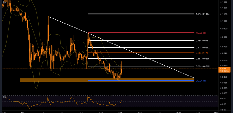 LCX has been up 20% in the last 24 hours. The price of the currency had a good rally with support in the $0.0440-$0.0453 range, and its previous bottom broken in the $0.0500 range was retaken by buyers. This support range can now be an area for further price growth if the price pulls back to it. Two dynamic resistances are drawn on the chart. The first resistance in the $0.0570 range has prevented the price from going any further, with a strong negative reaction. But if this range turns into support, further growth is in store for this currency, and the next target is in the $0.0670-$0.0675 range.